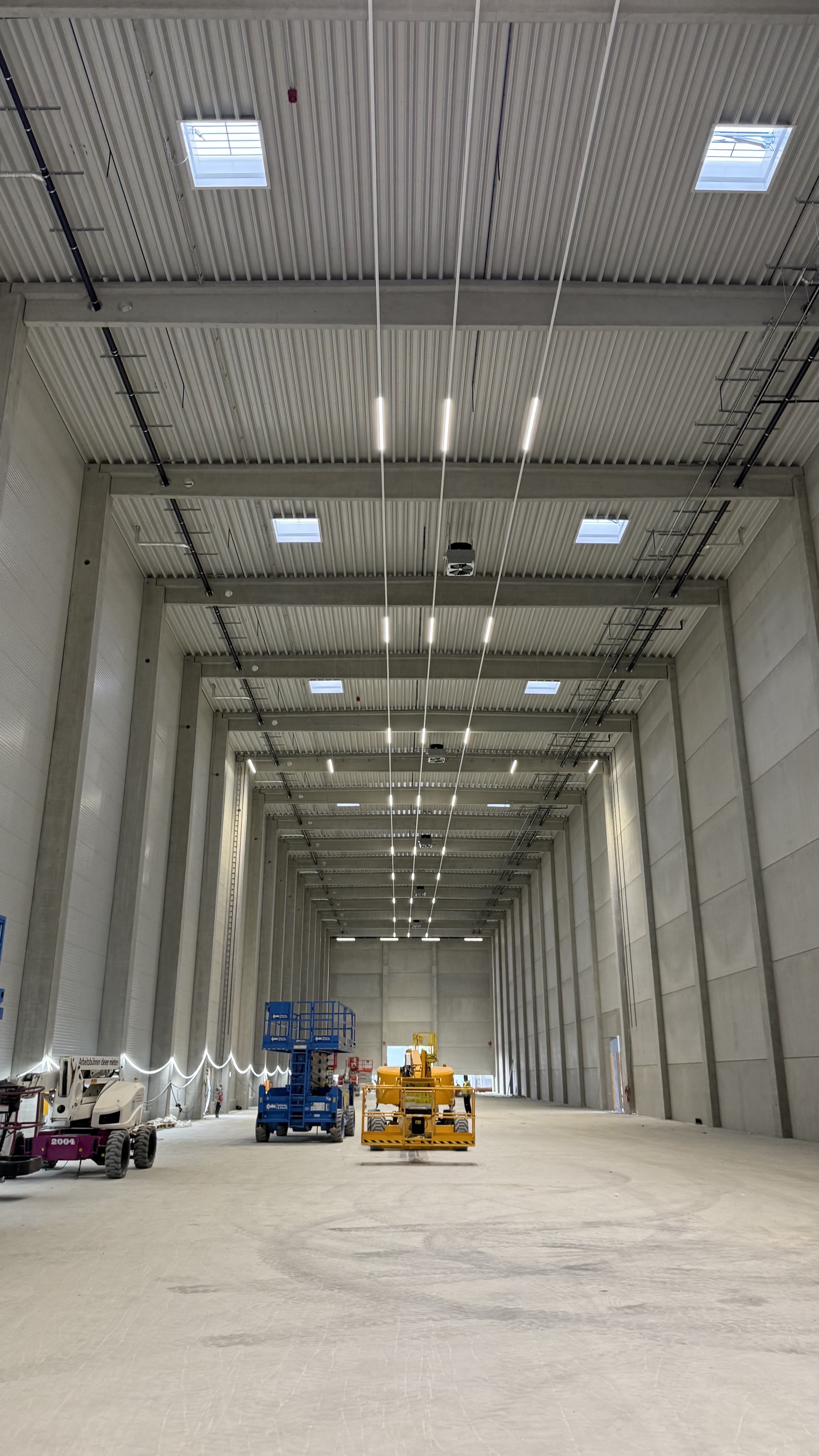 The production hall floors have been poured and completed. The high-bay warehouse building is ready for operation and BIKAR teams are currently installing the racking systems, adding 25,000 t of storage capacity and more than doubling the site’s existing capacity along the A4. The first saw components have already arrived, with further machinery arriving continuously.